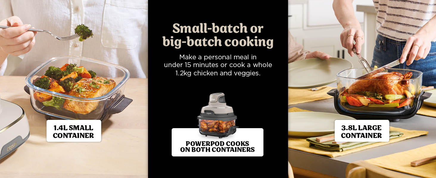 • RECRISP – החזרת הפריכות למנות מוכנות (ששמרתם נגיד במקרר ורוצים למחרת לאכול) כמו שניצל, פיצה, צ'יפס ועוד