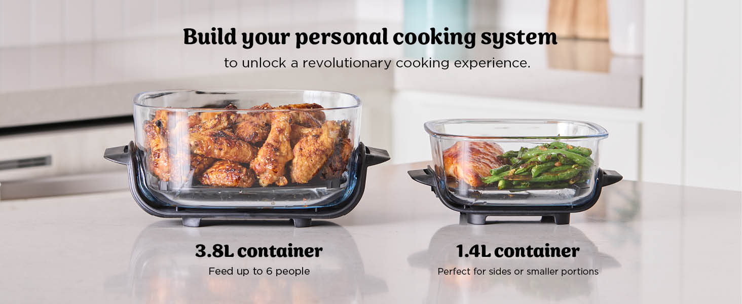 קערות זכוכית עמידות בחום – כולל קערה גדולה 3.8 ליטר (לעד 6 מנות) וקערת 1.4 ליטר (לתוספות ויחידים)