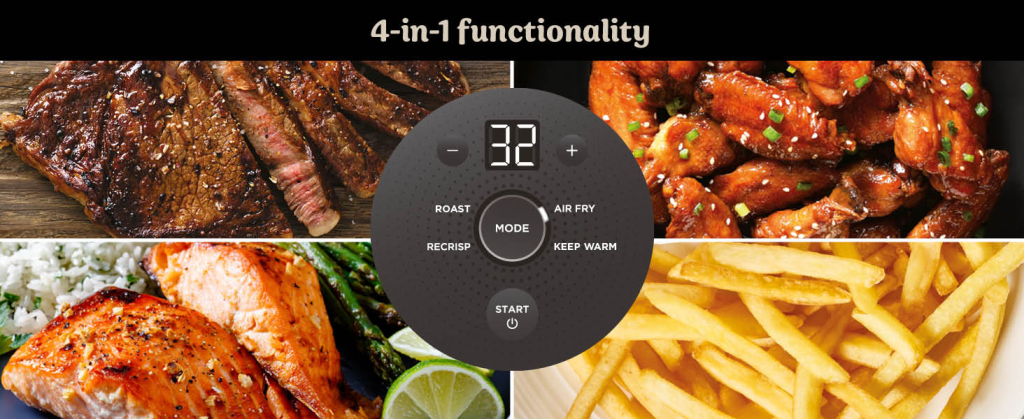 • AIR FRY – טיגון באוויר עם תוצאה פריכה וטעימה, כמעט בלי שמן
