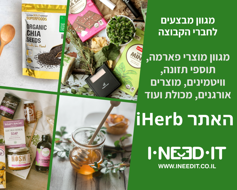 "ה"אתר המדהים עם מלא דברים, שולח לישראל - BOXIT או בשליחים. עם אפשרות לתשלום מיסים מראש אם רוצים וכו. * עדכון: חודש המשלוח חינם בקנייה מעל כ-40 דולר (למשלוח ללוקרים) למערך השליחויות של אייהרב וזאת בנוסף למשלוחים ע״י חברת DHL Express שמספקת גם שירות תשלום מראש למיסים שיאפשר כמובן שקט בראש בלי הפתעות וגם אספקה… להמשיך לקרוא iHerb – תוספים, וויטמינים, מוצרים אורגנים, מוצרים אורגנים